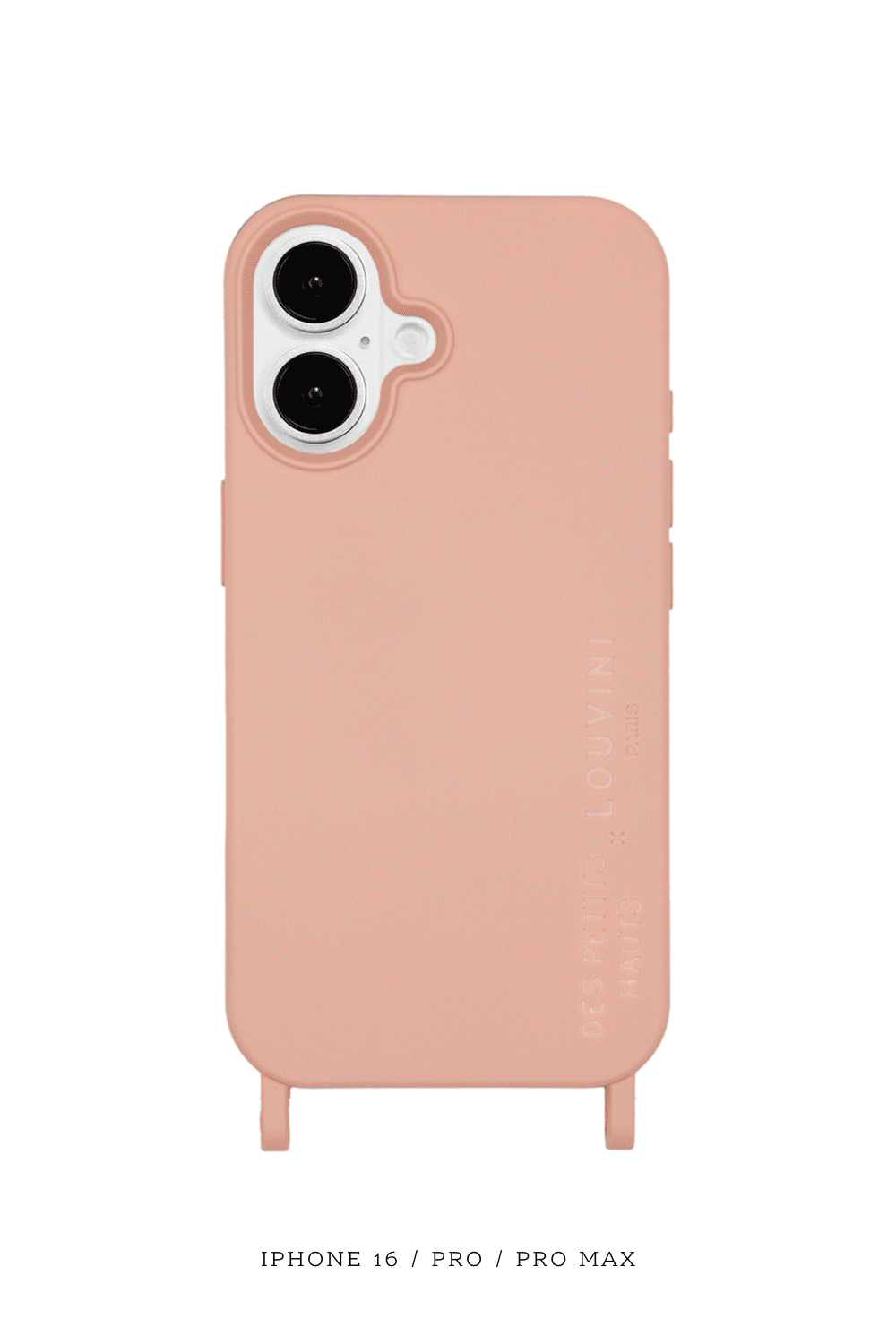 Pour célébrer nos 25 ans, Des Petits Hauts s’associe à Louvini Paris, la marque d’accessoires premium pour téléphones, et imaginent 3 modèles exclusifs co-créés : Une coque iPhone (disponible en 3 tailles : 16, 16 Pro et 16 Pro Max) déclinée dans notre couleur signature : le rose. Une lanière élégante assortie. Un sticker double-coeurs à coller sur la coque en personnalisation.