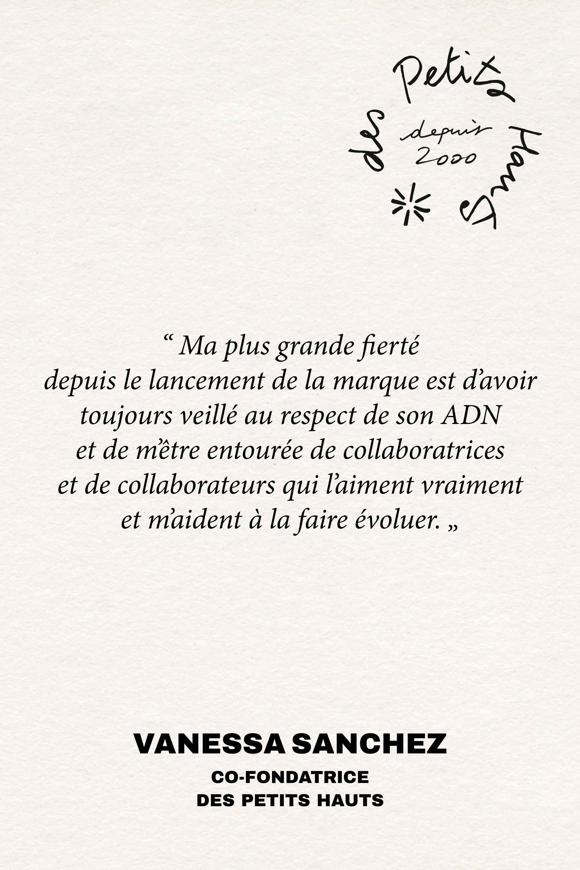 Pour célébrer cet anniversaire, Vanessa, co-fondatrice de DES PETITS HAUTS vous dévoile ses 25 pièces préférées de la saison. De la robe coup de cœur à l’indémodable maille, chaque création témoigne du savoir-faire et de l’attention aux détails qui font la signature Des Petits Hauts. Des pièces uniques, durables et intemporelles, conçues pour sublimer sans encombrer votre dressing.