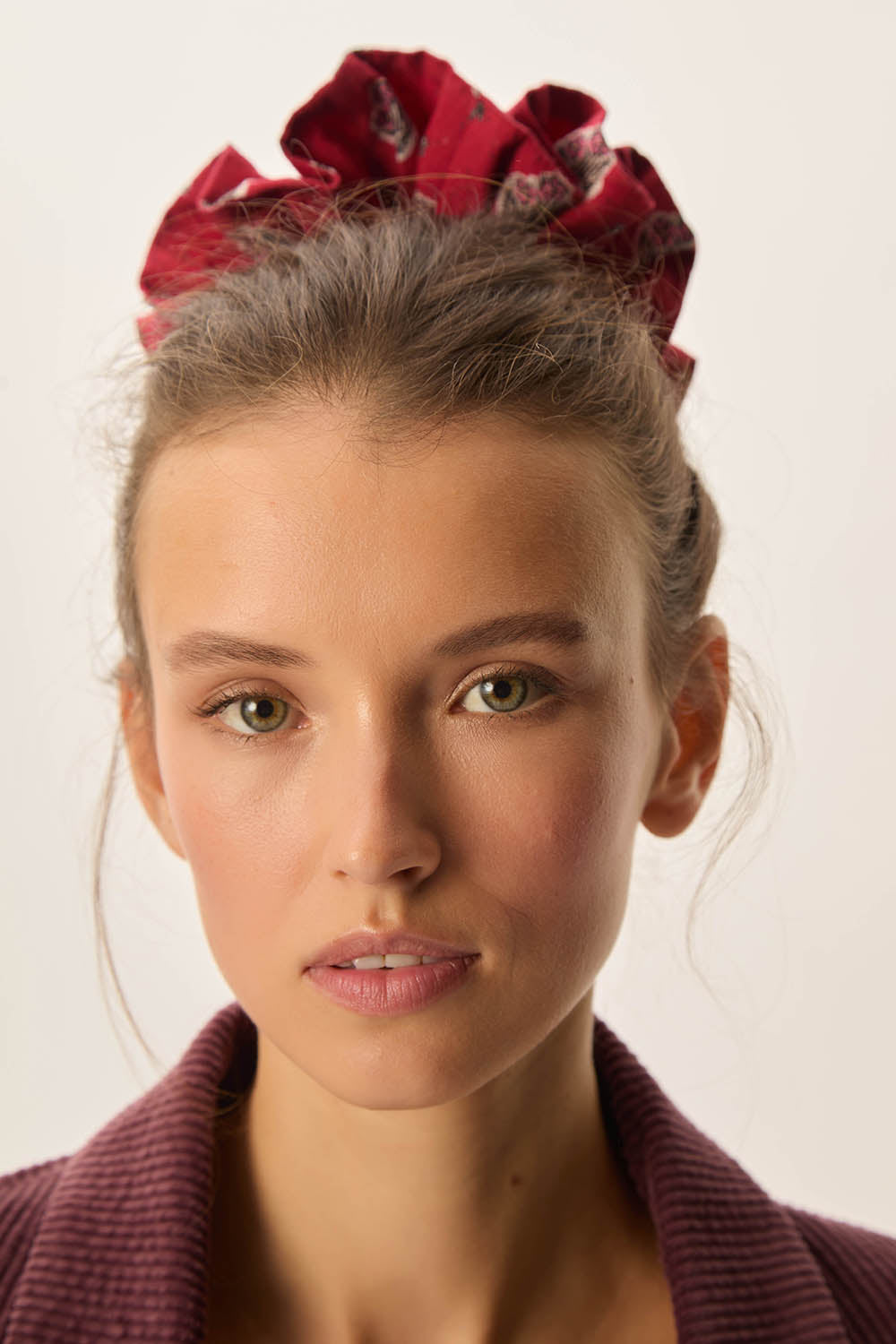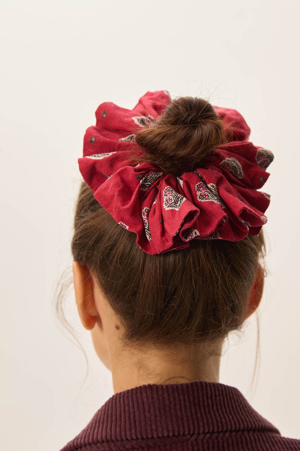 This season's must-have trend, the Wanda scrunchie has big ideas with its XXL size. Printed with a folk-style pattern, it will add interest to your hairstyles.