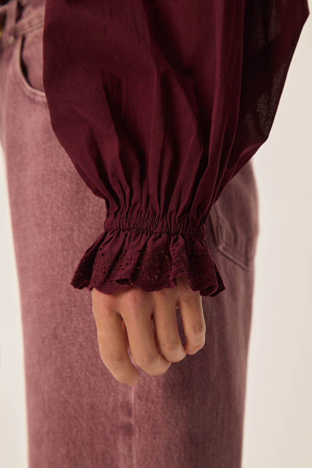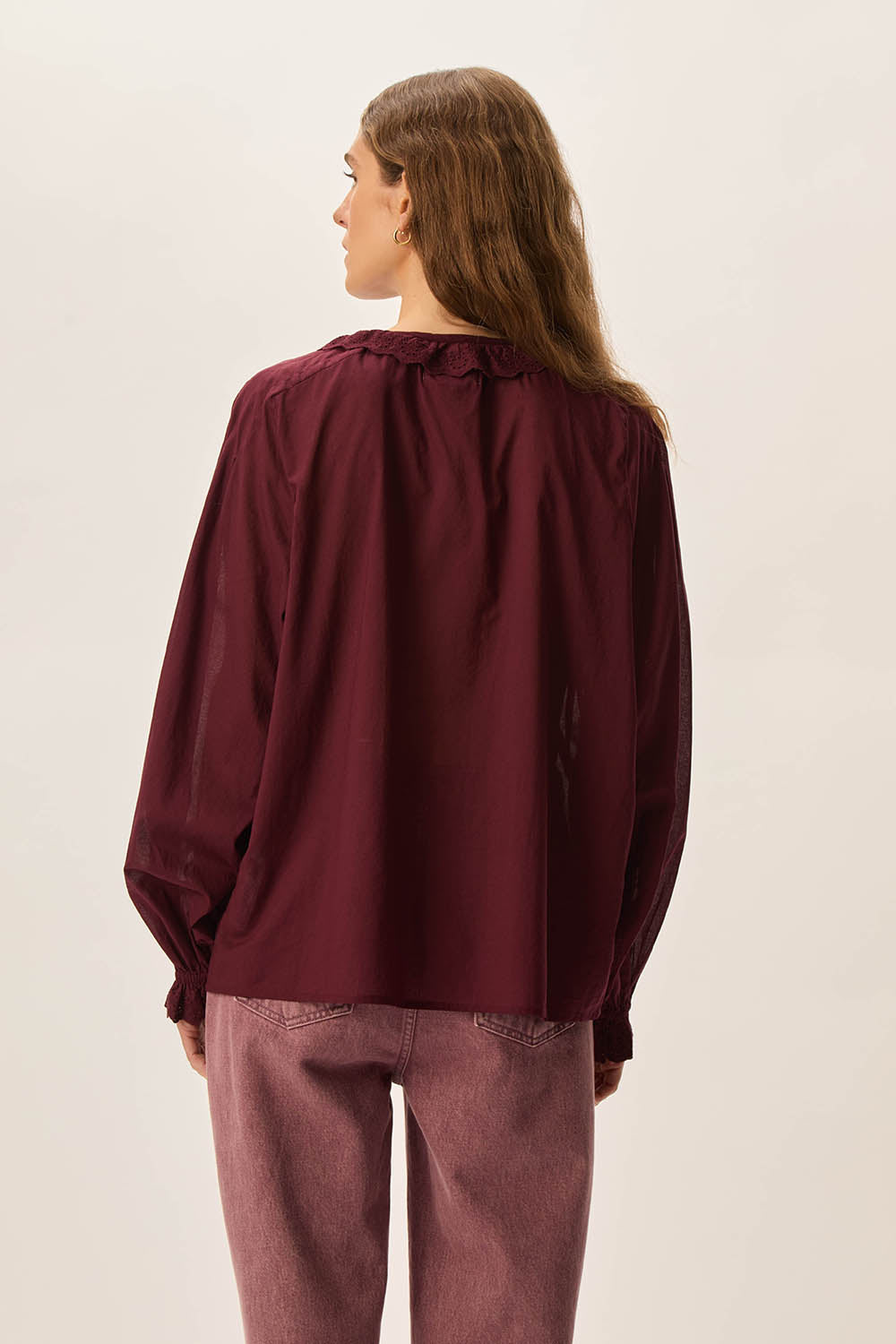 Blouse voile de coton bordeaux manches longues
