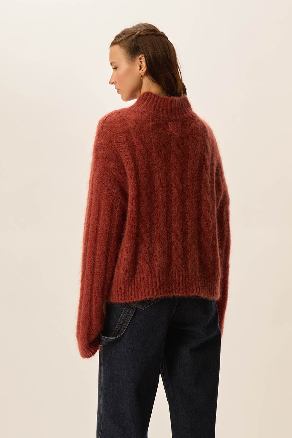 Inspired by Aran knits with its cables and jersey stitch, Alonzo is a chic, warm jumper that will elevate your looks. With a wide cut and high neck, this piece can be worn over a shirt or a dress and earns its place among this season's must-have knits.