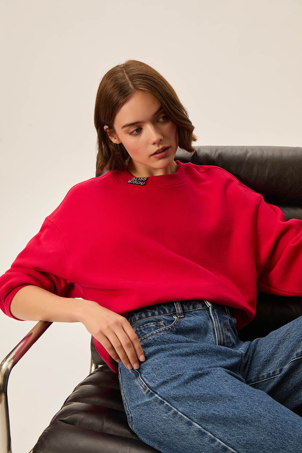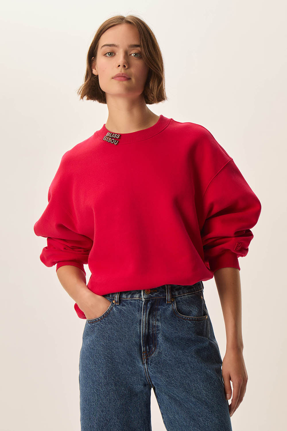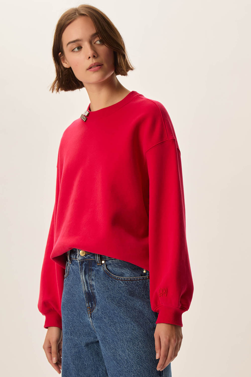 Sweat coton certifié BCI oversize rouge
