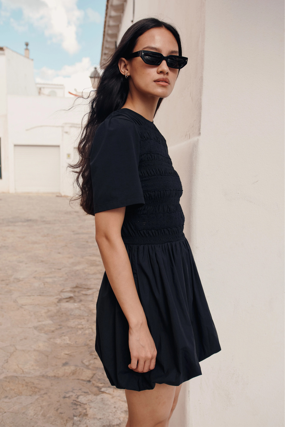 s’associent à des drapés fluides et des jerseys sculptants empruntés à l’univers de la danse.