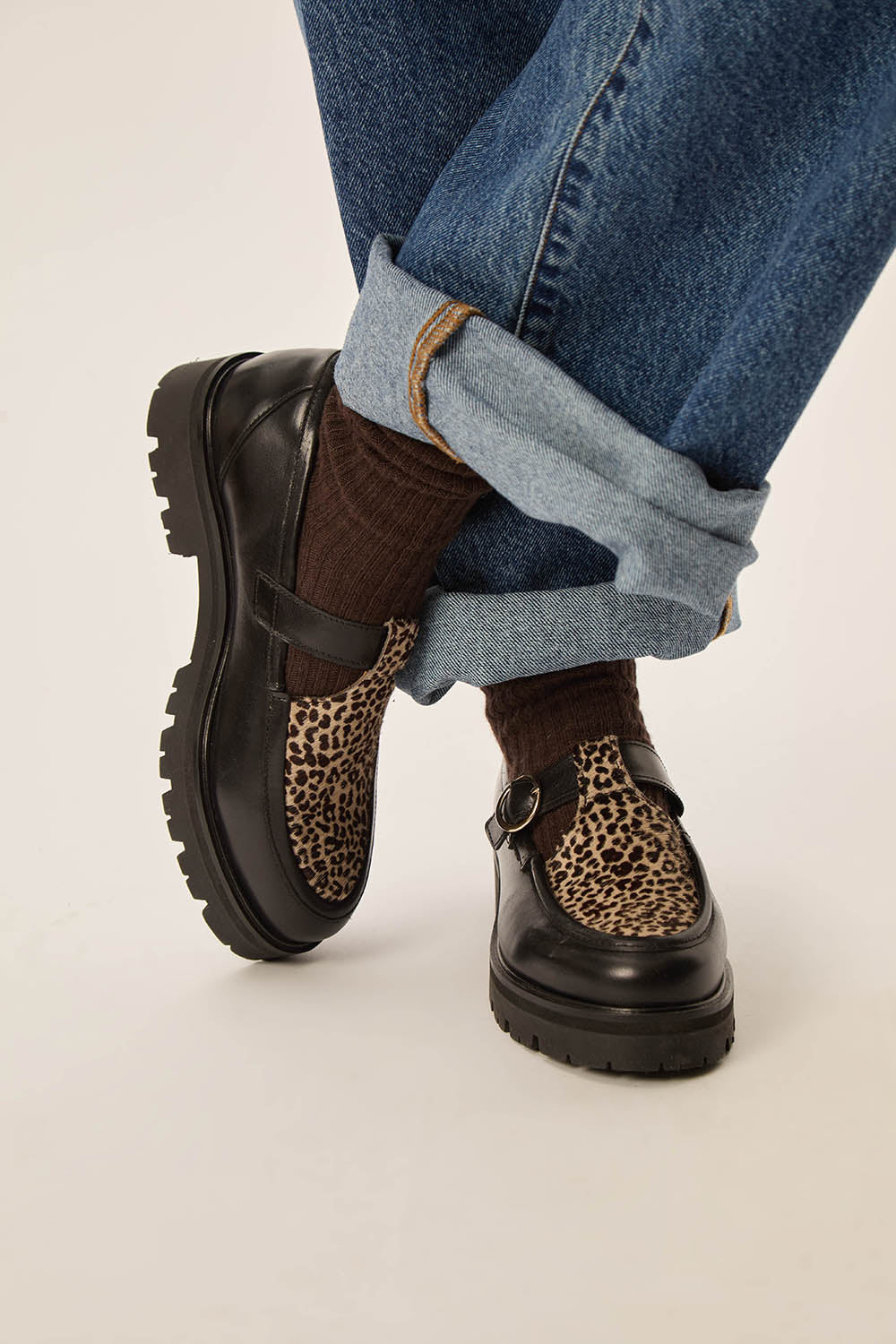 • Mary Jane creepers en cuir lisse avec bride en cuir