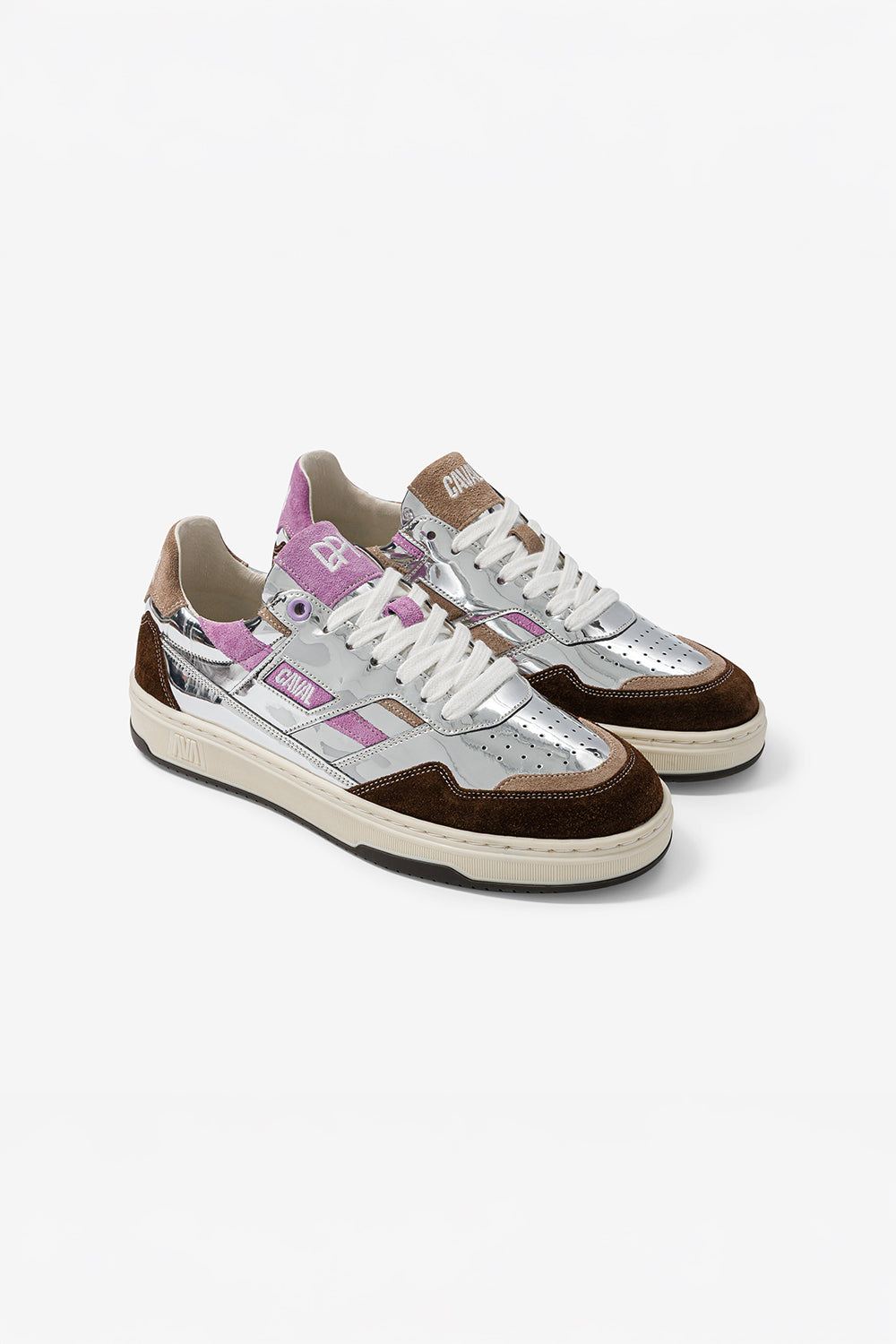 Les baskets Playground bousculent les codes sportswear et se réinventent dans une version rétro futuriste en cuir miroir. Avec pour signature stylistique leur asymétrie de coloris, elles dynamiseront un look officewear ou une tenue minimaliste. Des baskets au parti pris fort qui brilleront aussi bien la journée qu'en soirée.