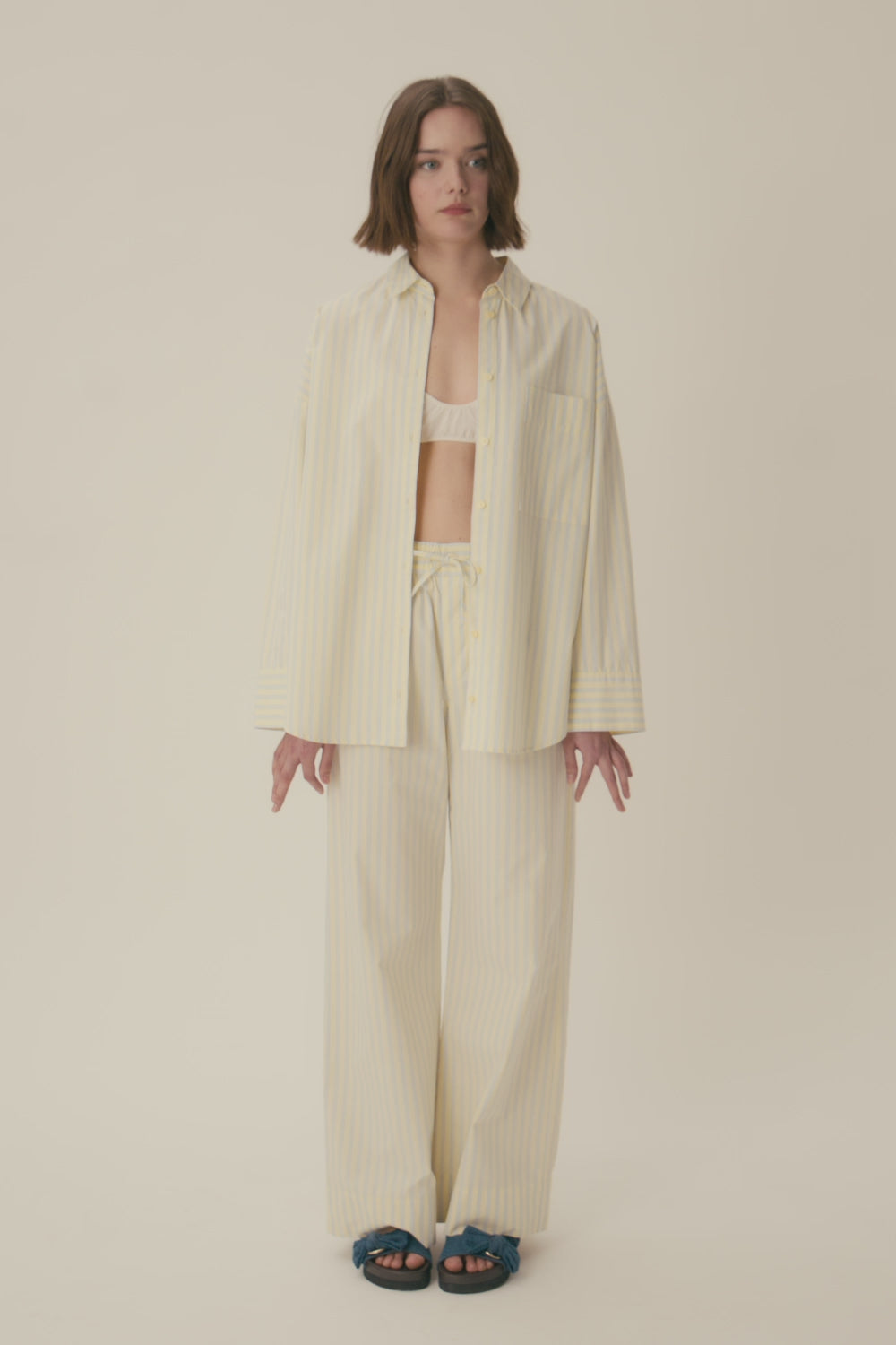 Inspirée de l'univers sleepwear avec ses rayures pastel et son coton souple, la chemise en coton Totoro s'inscrit dans la tendance pyjama de jour. Portée ouverte sur un top avec jean ou en total look avec le pantalon, ce modèle cosy vous suivra toute la saison.
