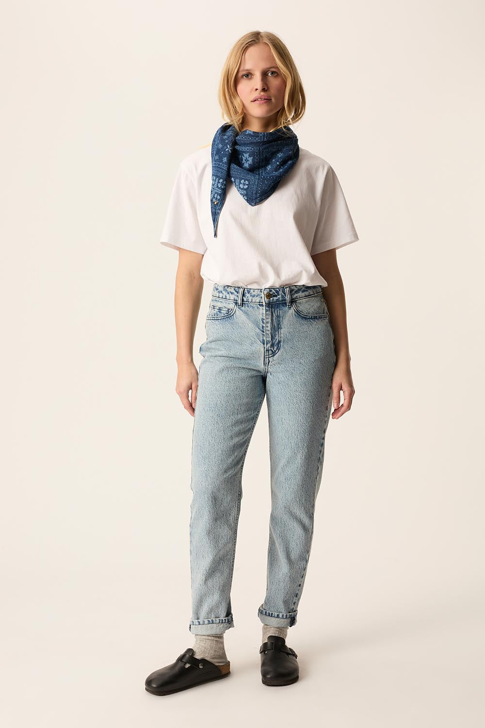 La ligne de denim est travaillée en collaboration avec une spécialiste du denim écoresponsable. Elle sélectionne des matières respectueuses de l'environnement et repense de manière éthique les traitements des tissus et la fabrication des produits.