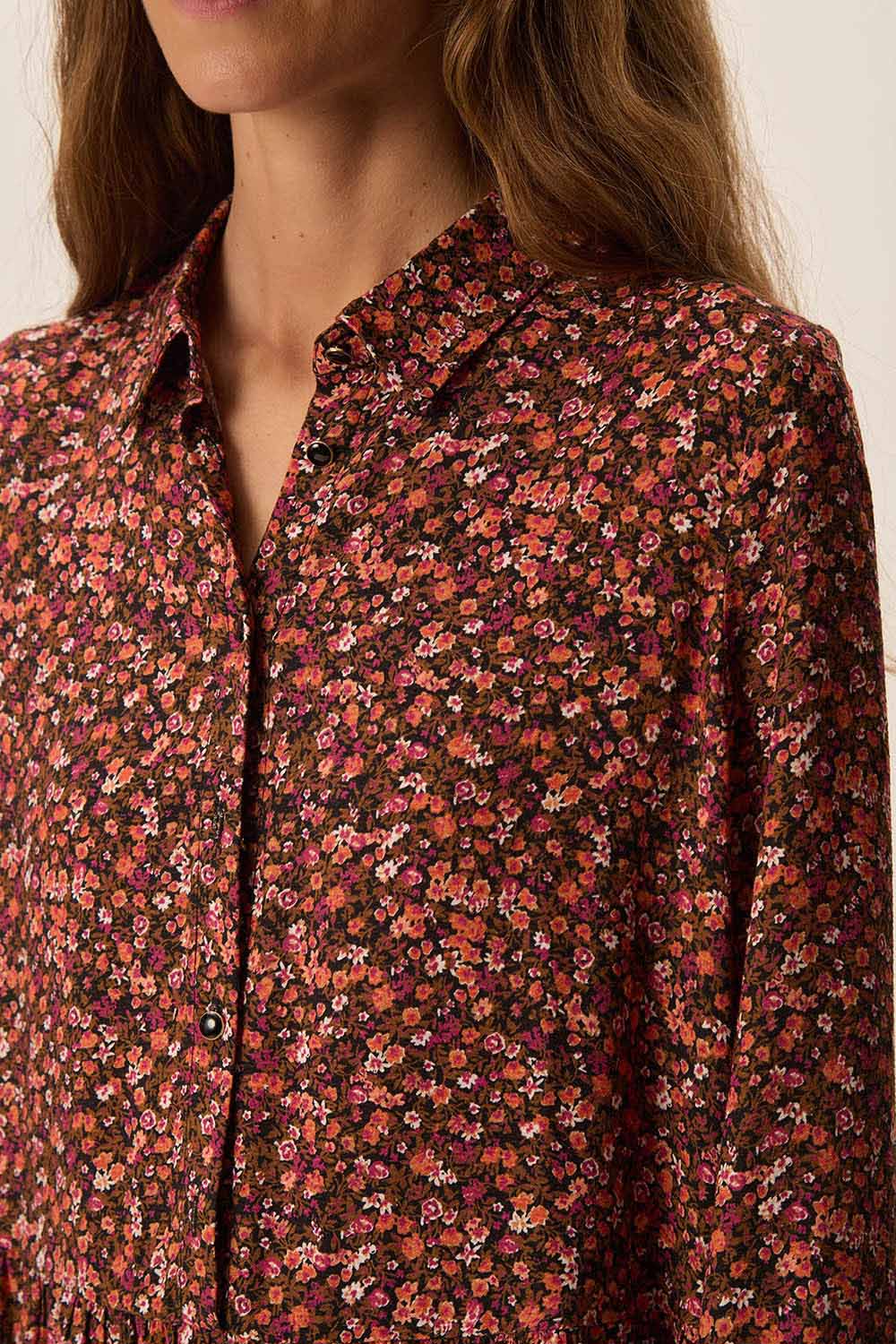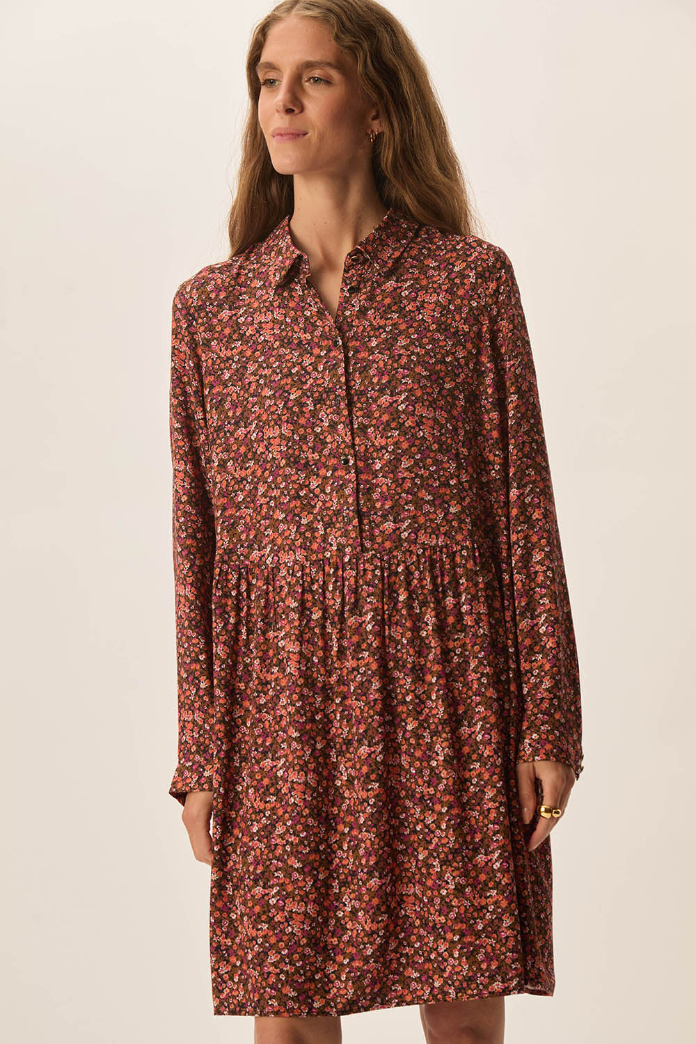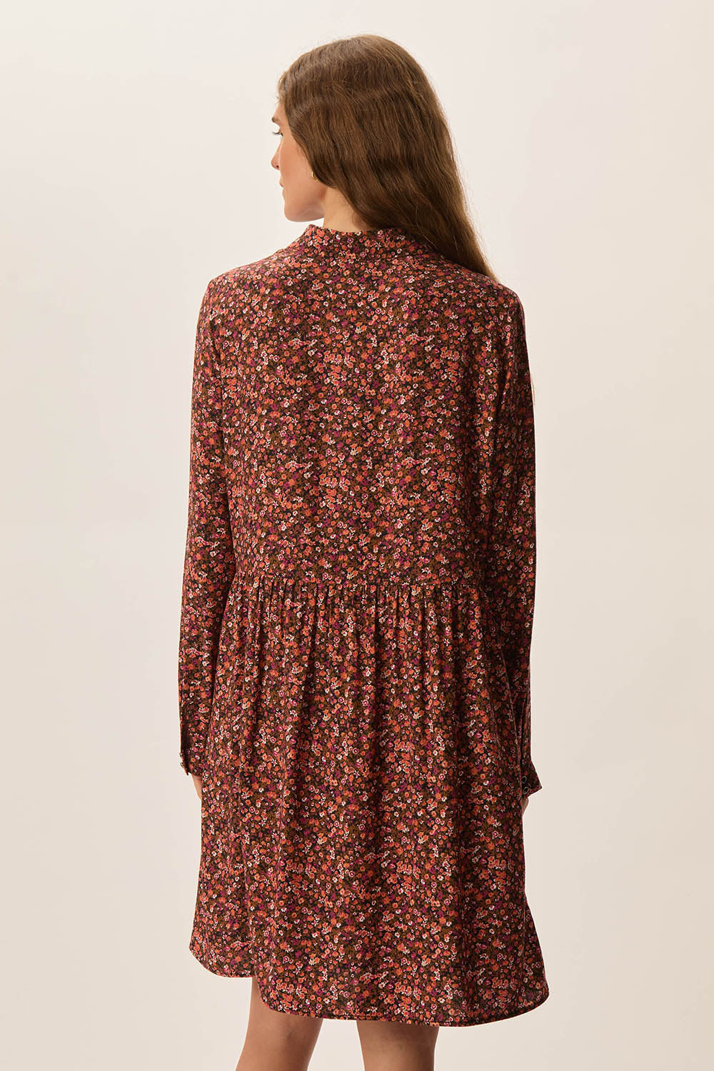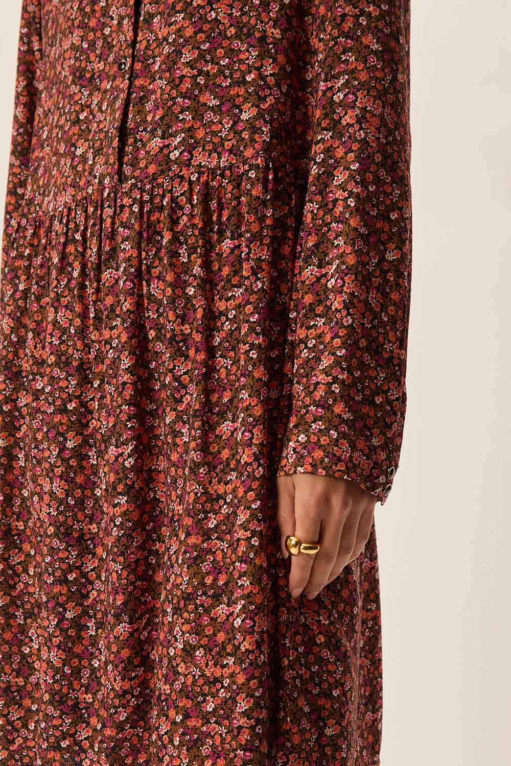 Esprit prairie chic avec son imprimé floral dense et vibrant évoluant sur une viscose plumetis, la robe Eline trouve le juste équilibre entre allure folk et féminité pour sublimer les silhouettes d'hiver.